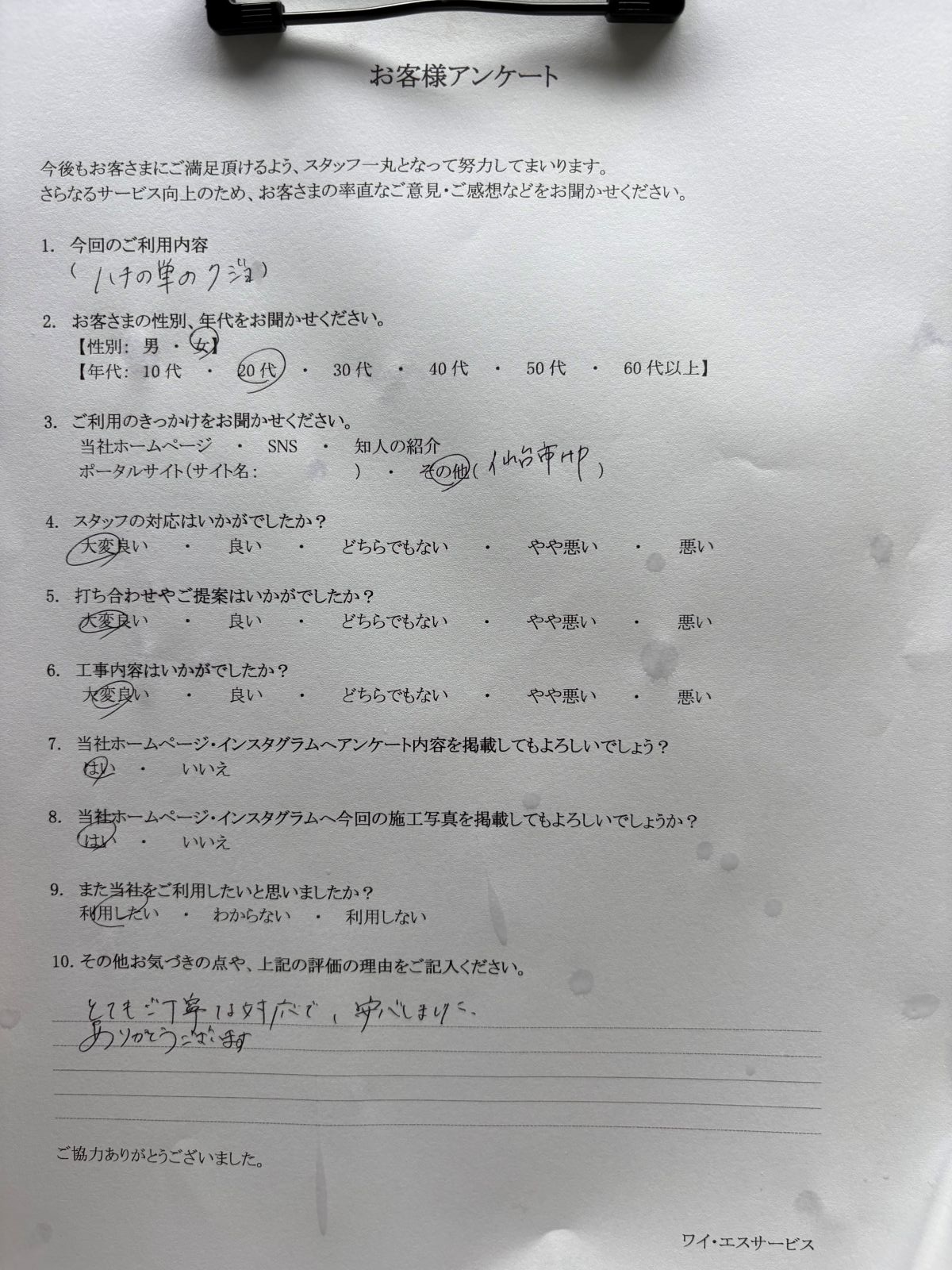 お客様アンケート